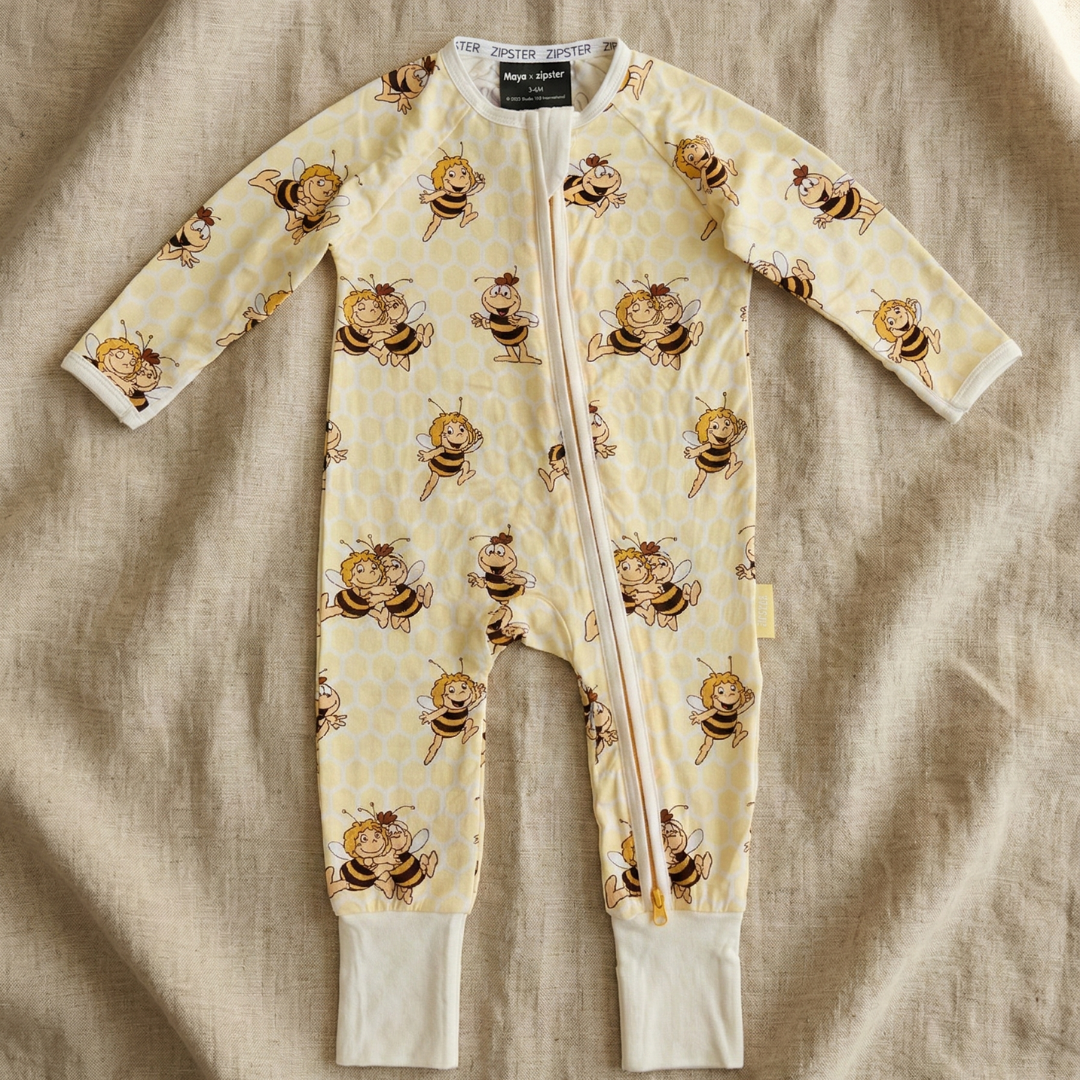 Teil unserer Zipster x Biene Maja-Kollektion mit ultraweicher Babykleidung und Schlafanzügen aus Bambus, die für Komfort, Spiel und alltägliche Abenteuer konzipiert sind.