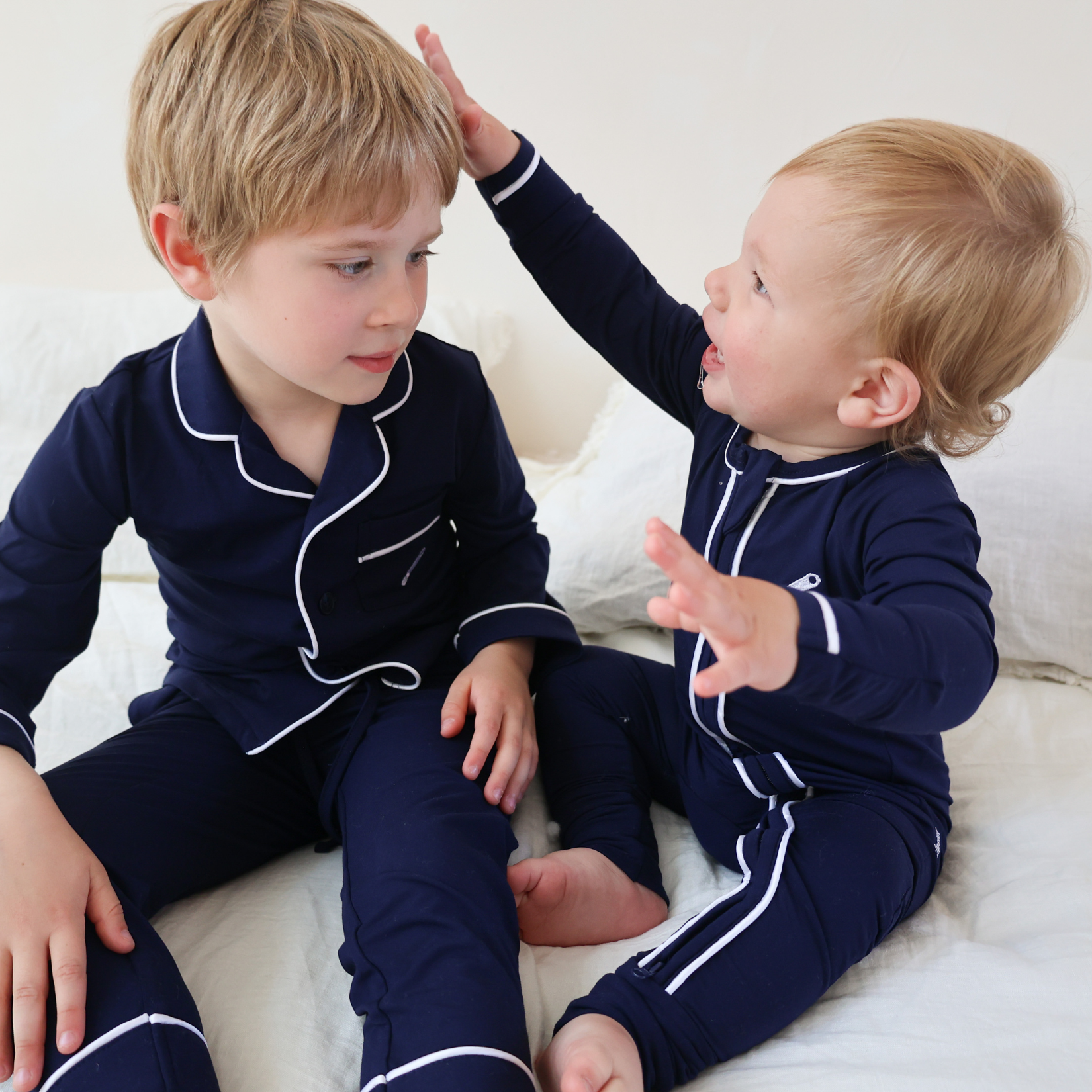 Unsere Kleidung ist aus unserem charakteristischen Bambusgewebe gefertigt, das für seine butterweiche Beschaffenheit bekannt ist. Um Ihre Kleidungsstücke in einem Top-Zustand zu halten, empfehlen wir Ihnen, sie auf links zu waschen und einen kalten Schonwaschgang zu wählen. Die besten Ergebnisse erzielen Sie, wenn Sie sie zum Trocknen flach hinlegen oder auf niedriger Stufe im Wäschetrockner trocknen und bei Bedarf ein kühles Bügeleisen verwenden. Detaillierte Anweisungen finden Sie immer auf dem Pflegeetikett.